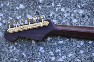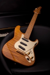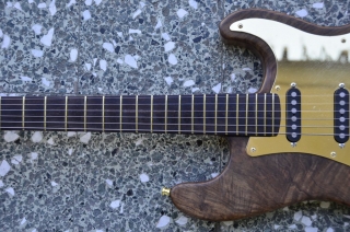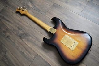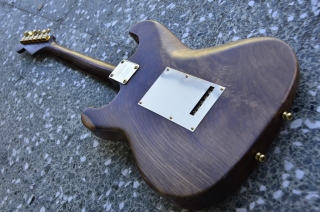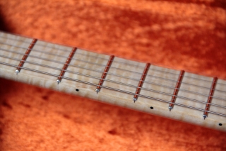 Flamed maple neck (stained with linseed oil and finished with oil/polyester)